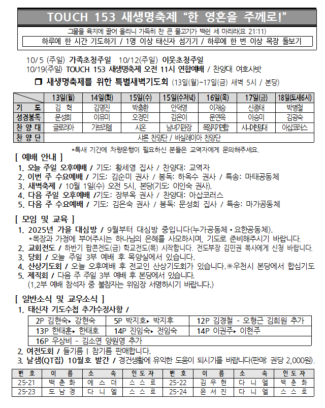 2025년 9월 28일 주보 페이지 정보 작성자 서버관리 댓글 작성일25-10-04 본문 2025년 9월 28일 주보 댓글목록 목록 교회주보 목록 번호 제목 글쓴이 조회 날짜 834 2025년 10월 19일 새생명축제 주보 서버관리 76 2025-10-22 833 2025년 10월 12일 주보 서버관리 156 2025-10-12 832 2025년 10월 5일 주보 서버관리 203 2025-10-04 열람중 2025년 9월 28일 주보 서버관리 146 2025-10-04 830 2025년 9월 21일 주보 서버관리 233 2025-09-24 829 2025년 9월 14일 주보 서버관리 319 2025-09-16 828 2025년 9월 7일 주보 서버관리 698 2025-09-06 827 2025년 8월 31일 주보 서버관리 352 2025-09-03 826 2025년 8월 24일 주보 서버관리 908 2025-08-24 825 2025년 8월 17일 주보 서버관리 1086 2025-08-24 824 2025년 8월 10일 주보 서버관리 834 2025-08-10 823 2025년 8월 3일 주보 서버관리 885 2025-08-10 822 2025년 7월 27일 주보 서버관리 693 2025-08-10 821 2025년 7월 20일 주보 서버관리 941 2025-08-10 820 2025년 7월 13일 주보 서버관리 1035 2025-07-15 819 2025_7_6 주보 서버관리 932 2025-07-05 열린1페이지 2페이지 3페이지 4페이지 5페이지 6페이지 7페이지 8페이지 9페이지 10페이지 다음 맨끝 검색대상 제목 내용 제목+내용 회원아이디 회원아이디(코) 글쓴이 글쓴이(코) 검색어 필수 검색