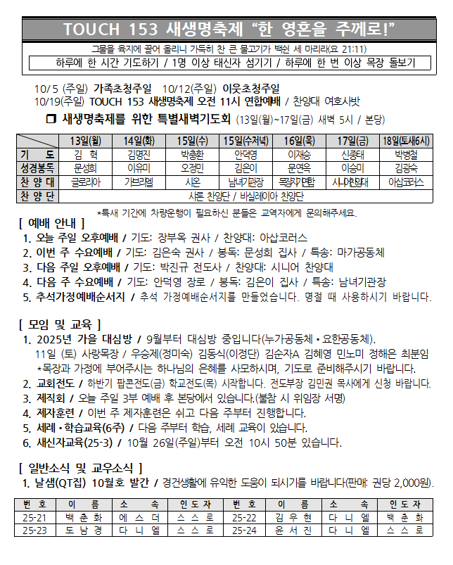 2025년 10월 5일 주보 페이지 정보 작성자 서버관리 댓글 작성일25-10-04 본문 2025년 10월 5일 주보 댓글목록 목록 교회주보 목록 번호 제목 글쓴이 조회 날짜 834 2025년 10월 19일 새생명축제 주보 서버관리 76 2025-10-22 833 2025년 10월 12일 주보 서버관리 156 2025-10-12 열람중 2025년 10월 5일 주보 서버관리 205 2025-10-04 831 2025년 9월 28일 주보 서버관리 146 2025-10-04 830 2025년 9월 21일 주보 서버관리 235 2025-09-24 829 2025년 9월 14일 주보 서버관리 319 2025-09-16 828 2025년 9월 7일 주보 서버관리 698 2025-09-06 827 2025년 8월 31일 주보 서버관리 352 2025-09-03 826 2025년 8월 24일 주보 서버관리 908 2025-08-24 825 2025년 8월 17일 주보 서버관리 1086 2025-08-24 824 2025년 8월 10일 주보 서버관리 834 2025-08-10 823 2025년 8월 3일 주보 서버관리 885 2025-08-10 822 2025년 7월 27일 주보 서버관리 693 2025-08-10 821 2025년 7월 20일 주보 서버관리 941 2025-08-10 820 2025년 7월 13일 주보 서버관리 1035 2025-07-15 819 2025_7_6 주보 서버관리 932 2025-07-05 열린1페이지 2페이지 3페이지 4페이지 5페이지 6페이지 7페이지 8페이지 9페이지 10페이지 다음 맨끝 검색대상 제목 내용 제목+내용 회원아이디 회원아이디(코) 글쓴이 글쓴이(코) 검색어 필수 검색