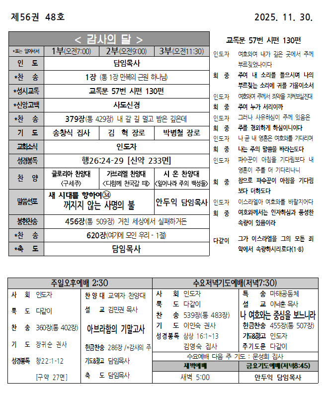 2025년 11월 30일 주보 페이지 정보 작성자 서버관리 댓글 작성일25-12-02 본문 2025년 11월 30일 주보 댓글목록 목록 교회주보 목록 번호 제목 글쓴이 조회 날짜 847 2026년 1월 18일 주보 서버관리 68 2026-01-17 846 2026년 1월 11일 주보 서버관리 62 2026-01-17 845 2026년 1월 4일 주보 서버관리 152 2026-01-07 844 2025년 12월 28일 주보 서버관리 165 2025-12-28 843 2025년 12월 21일 주보 서버관리 114 2025-12-27 842 2025년 12월 14일 주보 서버관리 243 2025-12-14 841 2025년 12월 7일 주보 서버관리 284 2025-12-07 열람중 2025년 11월 30일 주보 서버관리 250 2025-12-02 839 2025년 11월 23일 주보 서버관리 247 2025-11-25 838 2025년 11월 16일 주보 서버관리 283 2025-11-16 837 2025년 11월 9일 주보 서버관리 311 2025-11-11 836 2025년 11월 2일 주보 서버관리 293 2025-11-04 835 2025년 10월 26일 주보 서버관리 325 2025-10-28 834 2025년 10월 19일 새생명축제 주보 서버관리 358 2025-10-22 833 2025년 10월 12일 주보 서버관리 392 2025-10-12 832 2025년 10월 5일 주보 서버관리 442 2025-10-04 열린1페이지 2페이지 3페이지 4페이지 5페이지 6페이지 7페이지 8페이지 9페이지 10페이지 다음 맨끝 검색대상 제목 내용 제목+내용 회원아이디 회원아이디(코) 글쓴이 글쓴이(코) 검색어 필수 검색