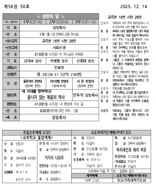 2025년 12월 14일 주보 페이지 정보 작성자 서버관리 댓글 작성일25-12-14 본문 2025년 12월 14일 주보 댓글목록 목록 교회주보 목록 번호 제목 글쓴이 조회 날짜 847 2026년 1월 18일 주보 서버관리 68 2026-01-17 846 2026년 1월 11일 주보 서버관리 62 2026-01-17 845 2026년 1월 4일 주보 서버관리 154 2026-01-07 844 2025년 12월 28일 주보 서버관리 167 2025-12-28 843 2025년 12월 21일 주보 서버관리 116 2025-12-27 열람중 2025년 12월 14일 주보 서버관리 245 2025-12-14 841 2025년 12월 7일 주보 서버관리 284 2025-12-07 840 2025년 11월 30일 주보 서버관리 250 2025-12-02 839 2025년 11월 23일 주보 서버관리 247 2025-11-25 838 2025년 11월 16일 주보 서버관리 283 2025-11-16 837 2025년 11월 9일 주보 서버관리 311 2025-11-11 836 2025년 11월 2일 주보 서버관리 295 2025-11-04 835 2025년 10월 26일 주보 서버관리 327 2025-10-28 834 2025년 10월 19일 새생명축제 주보 서버관리 358 2025-10-22 833 2025년 10월 12일 주보 서버관리 392 2025-10-12 832 2025년 10월 5일 주보 서버관리 442 2025-10-04 열린1페이지 2페이지 3페이지 4페이지 5페이지 6페이지 7페이지 8페이지 9페이지 10페이지 다음 맨끝 검색대상 제목 내용 제목+내용 회원아이디 회원아이디(코) 글쓴이 글쓴이(코) 검색어 필수 검색