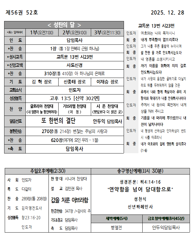 2025년 12월 28일 주보 페이지 정보 작성자 서버관리 댓글 작성일25-12-28 본문 2025년 12월 28일 주보 댓글목록 목록 교회주보 목록 번호 제목 글쓴이 조회 날짜 847 2026년 1월 18일 주보 서버관리 68 2026-01-17 846 2026년 1월 11일 주보 서버관리 62 2026-01-17 845 2026년 1월 4일 주보 서버관리 152 2026-01-07 열람중 2025년 12월 28일 주보 서버관리 167 2025-12-28 843 2025년 12월 21일 주보 서버관리 116 2025-12-27 842 2025년 12월 14일 주보 서버관리 243 2025-12-14 841 2025년 12월 7일 주보 서버관리 284 2025-12-07 840 2025년 11월 30일 주보 서버관리 250 2025-12-02 839 2025년 11월 23일 주보 서버관리 247 2025-11-25 838 2025년 11월 16일 주보 서버관리 283 2025-11-16 837 2025년 11월 9일 주보 서버관리 311 2025-11-11 836 2025년 11월 2일 주보 서버관리 295 2025-11-04 835 2025년 10월 26일 주보 서버관리 327 2025-10-28 834 2025년 10월 19일 새생명축제 주보 서버관리 358 2025-10-22 833 2025년 10월 12일 주보 서버관리 392 2025-10-12 832 2025년 10월 5일 주보 서버관리 442 2025-10-04 열린1페이지 2페이지 3페이지 4페이지 5페이지 6페이지 7페이지 8페이지 9페이지 10페이지 다음 맨끝 검색대상 제목 내용 제목+내용 회원아이디 회원아이디(코) 글쓴이 글쓴이(코) 검색어 필수 검색